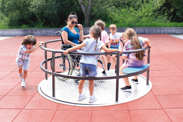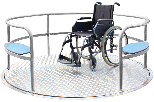Destiné aux aires de jeux publiques, aux écoles et aux espaces de loisirs, le carrousel inclusif s’inscrit dans une démarche d’accessibilité et de partage, offrant une expérience ludique commune et valorisant le jeu pour tous.